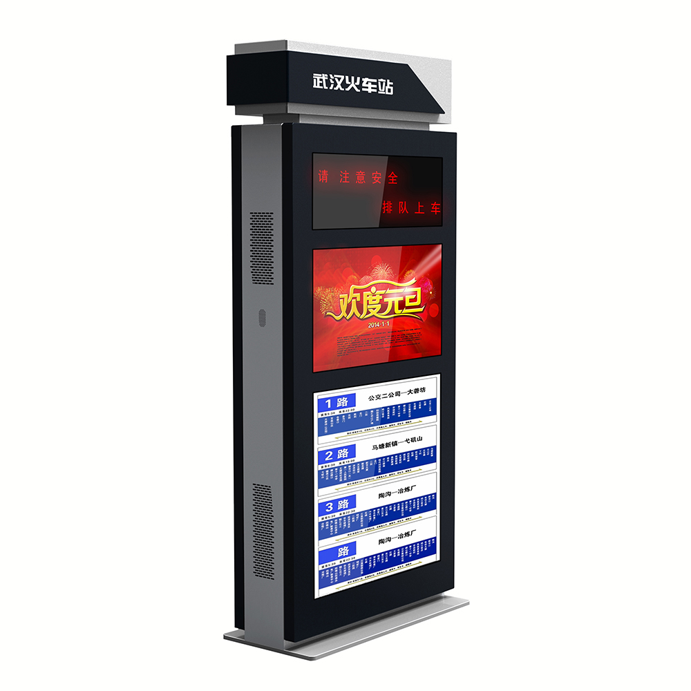 公交電子站牌戶外高亮:工業(yè)級戶外液晶顯示屏,亮度達到1500-2500流明,強光下可視;