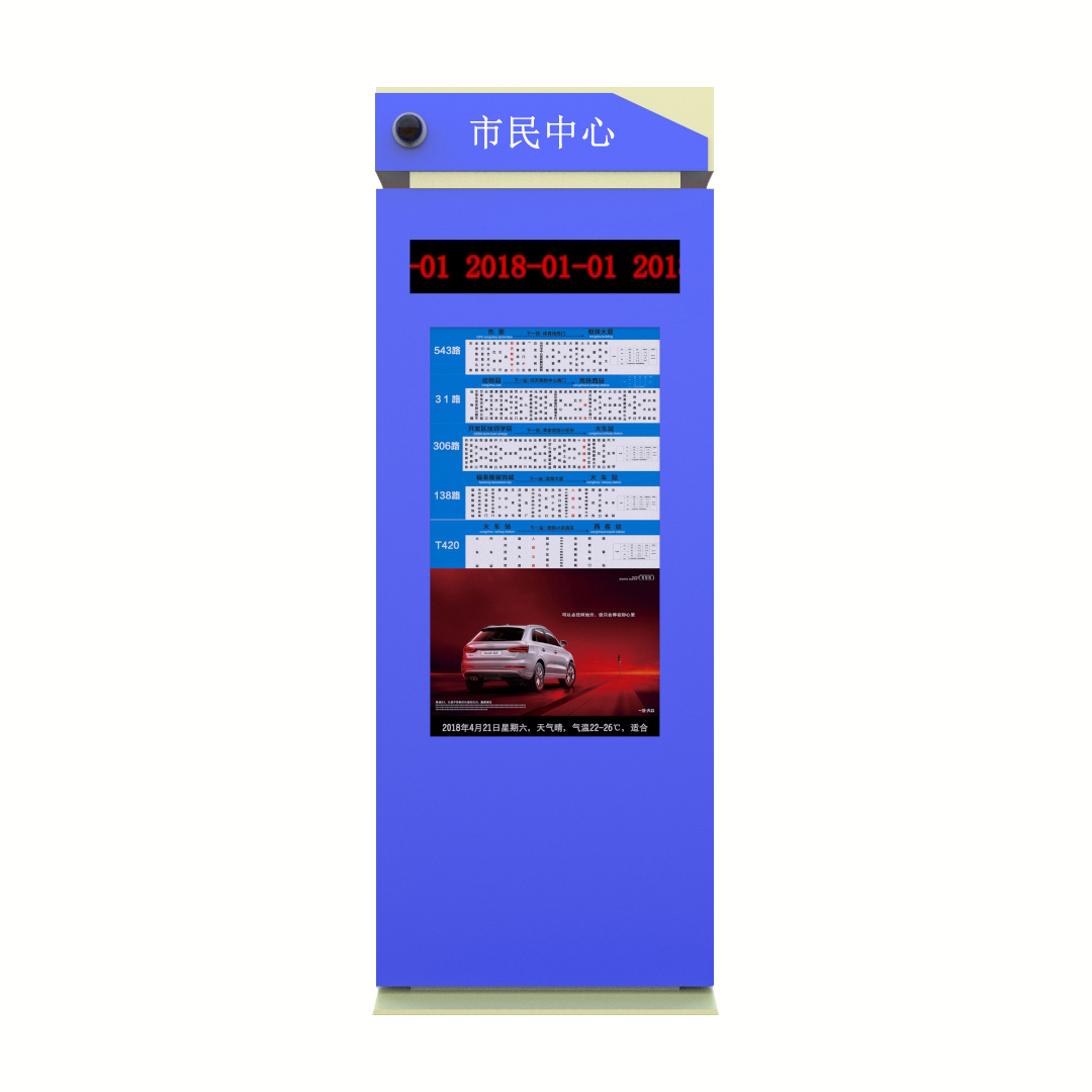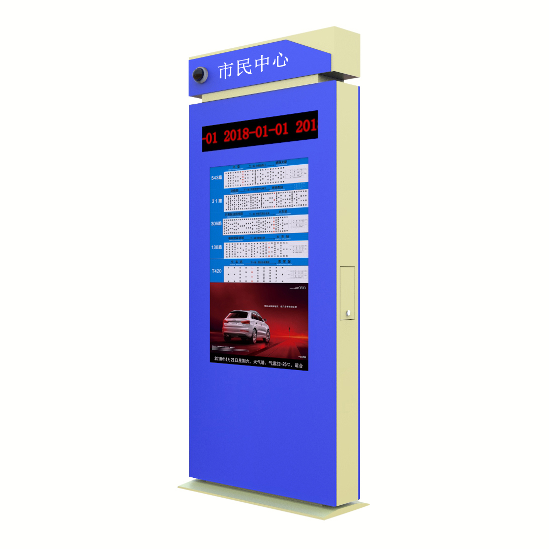 公交電子站牌全戶外防水、防塵、防盜、防爆,戶外防腐達到8年以上。全模塊化設計,方便安裝維護,AR防眩光玻璃,高透光低反射,防紫外線。